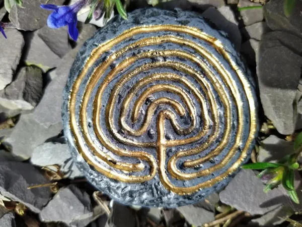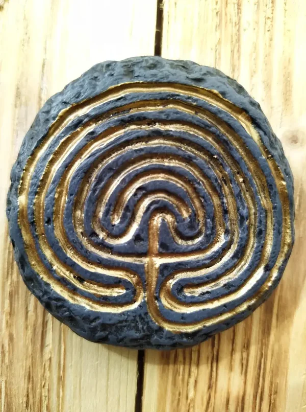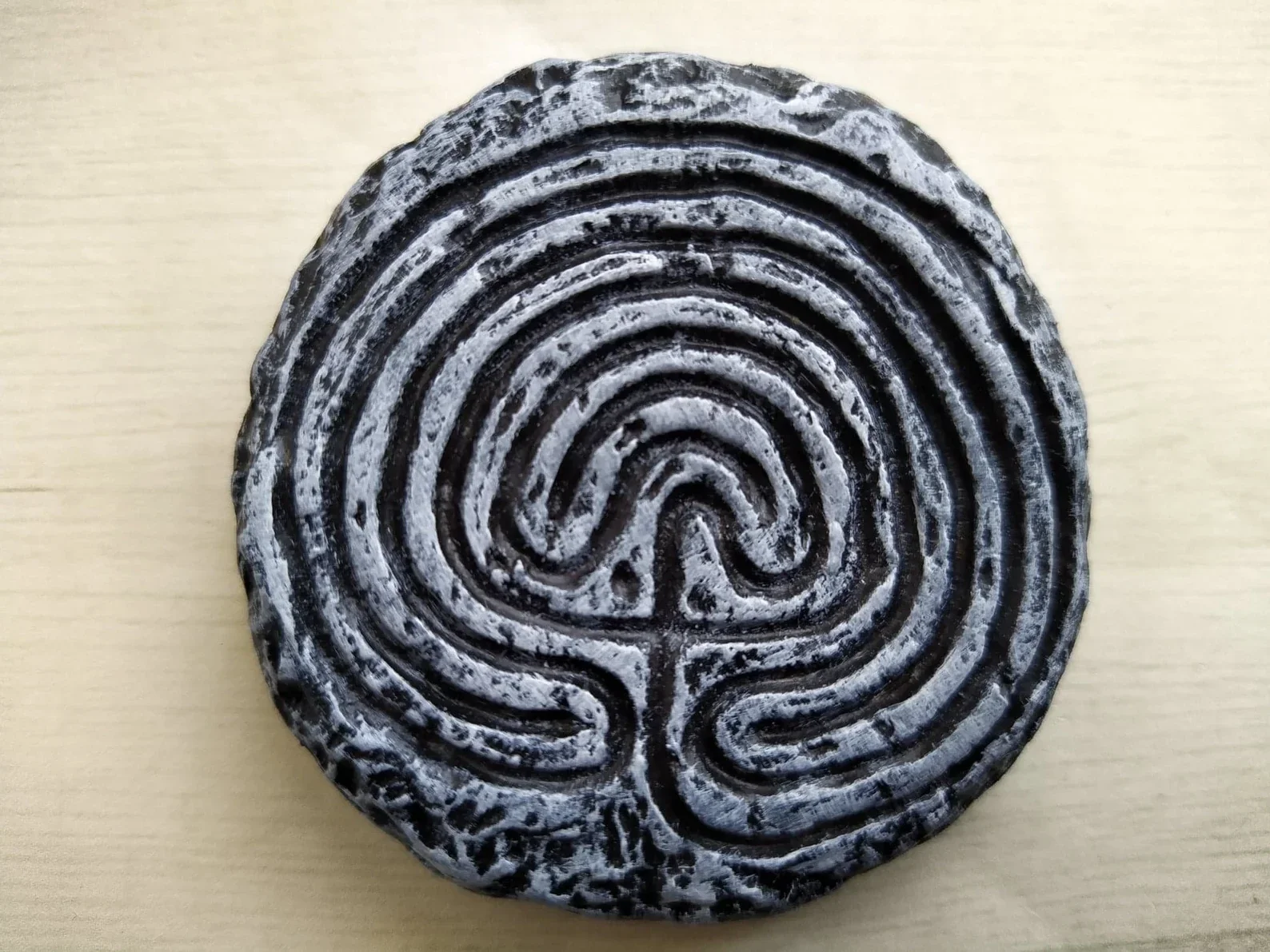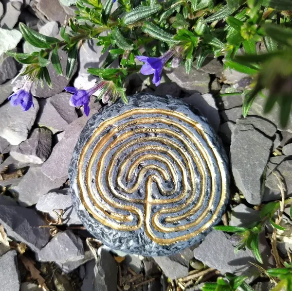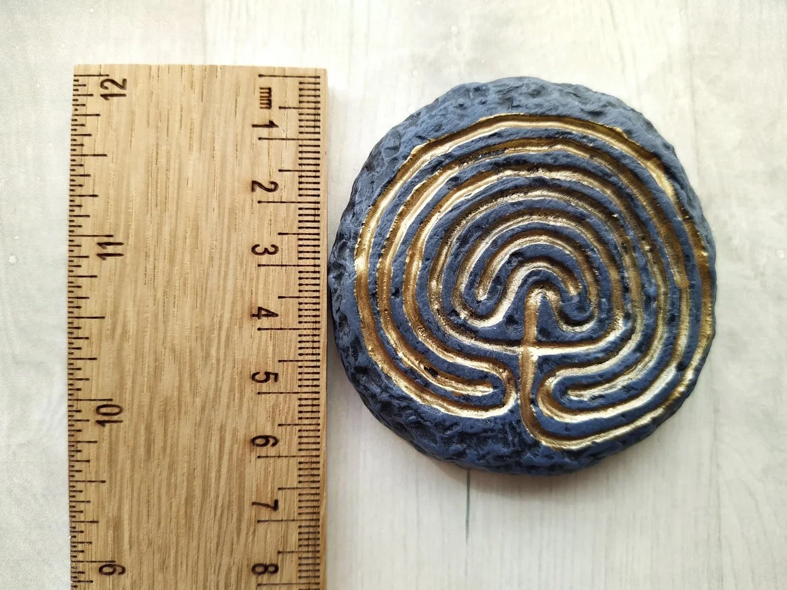 Labyrinth Rocky Valley Maze Pagan / Wiccan Small Symbol Stone, Indoor or Outdoor weatherproof, pocket altar flower pot rocks
