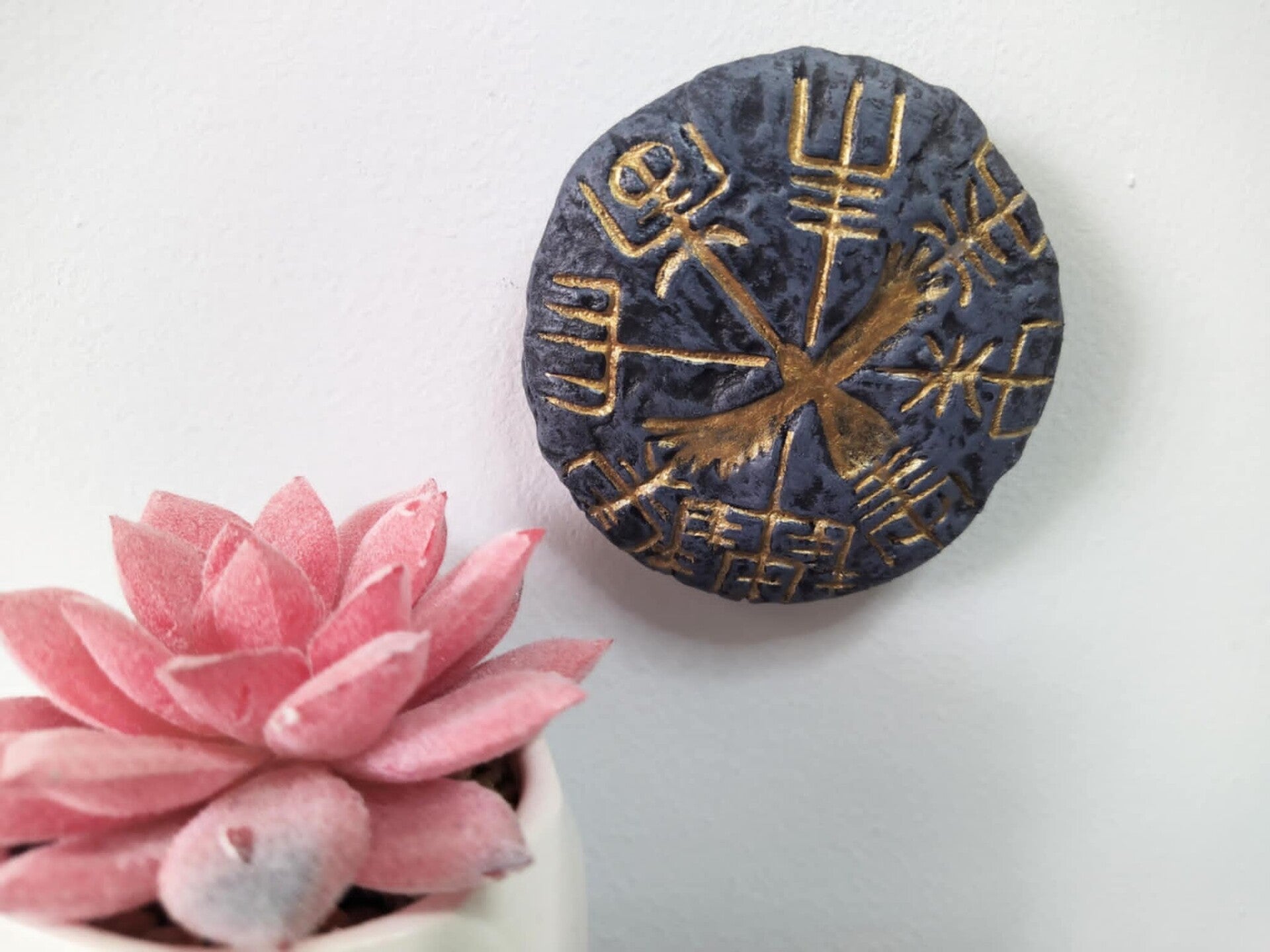 Viking Vegvisir Compass Symbol stone, plant pot garden or wall, indoor outdoor decoration