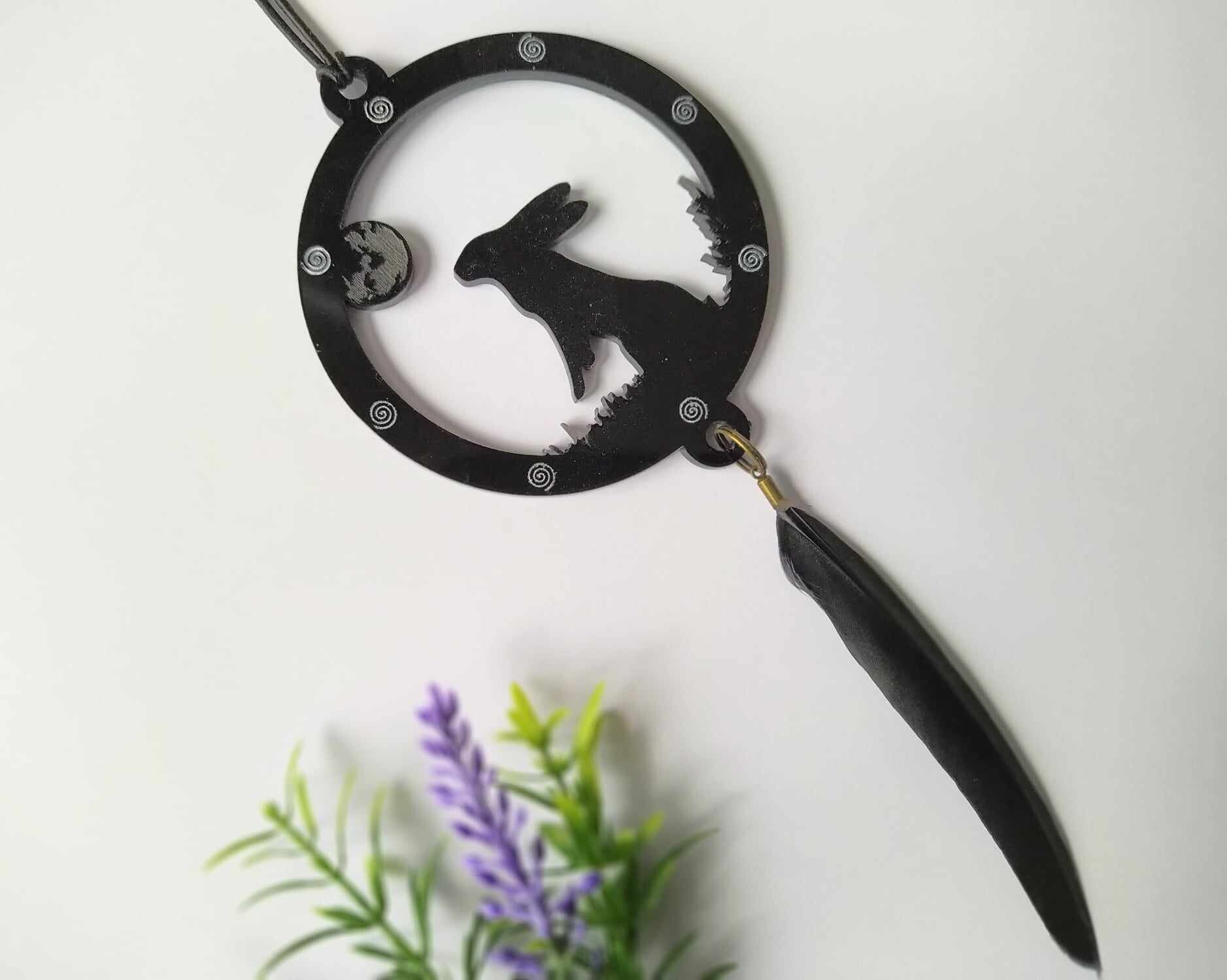 Moon Gazing Hare Rear View Mirror Hanger, Pagan Spiral Car or Window Accessory gift