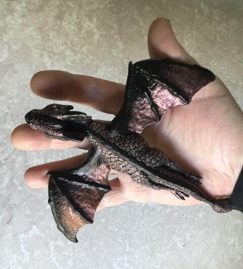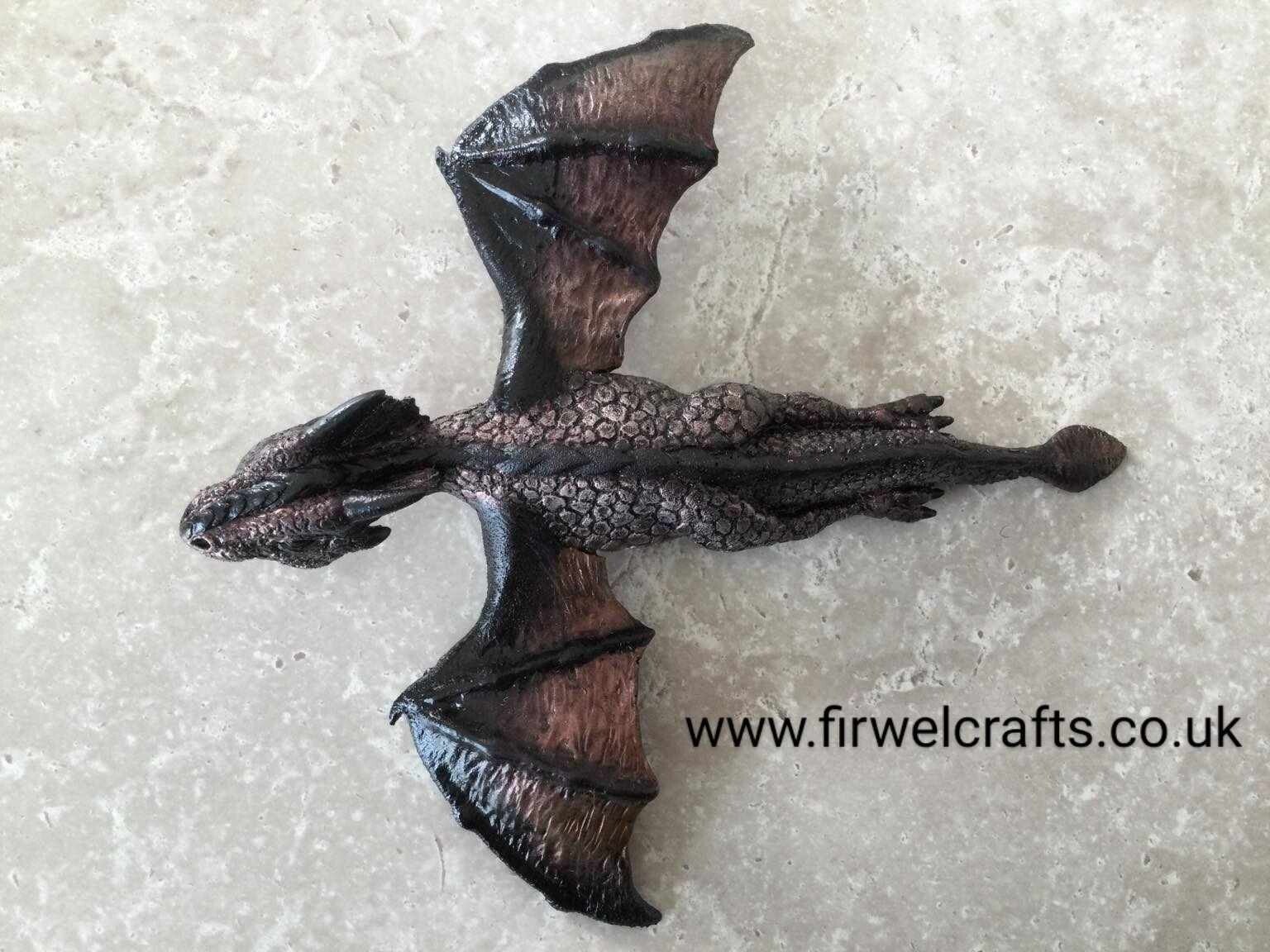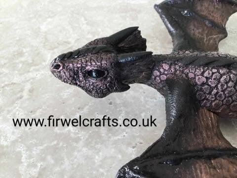 x Copper & Black Drake the Baby Flying Dragon wall decoration, Birthday gift for dragon collector.