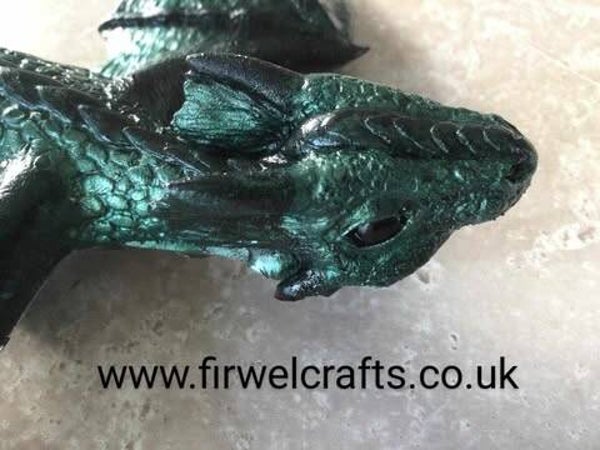 x Green & Black Drake the Baby Flying Dragon wall decoration, Birthday gift for dragon collector.