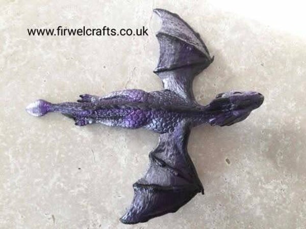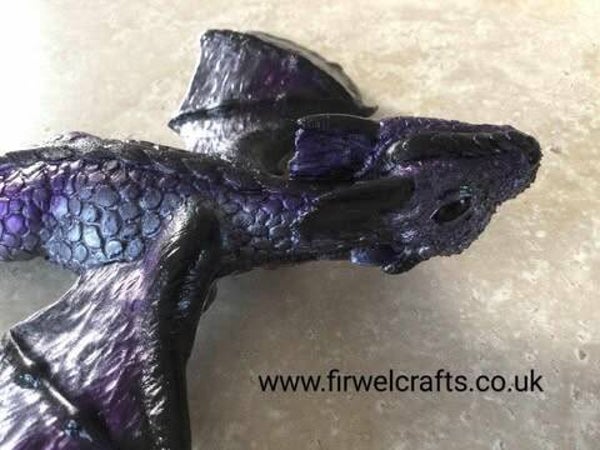 x Purple Lilac & Black Drake the Baby Flying Dragon wall decoration, Birthday gift for dragon collector.