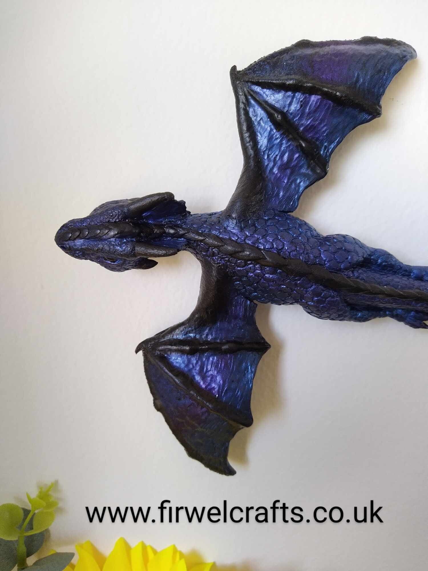 X Blue Purple & Black Drake the Baby Flying Dragon wall decoration, Birthday gift for dragon collector.