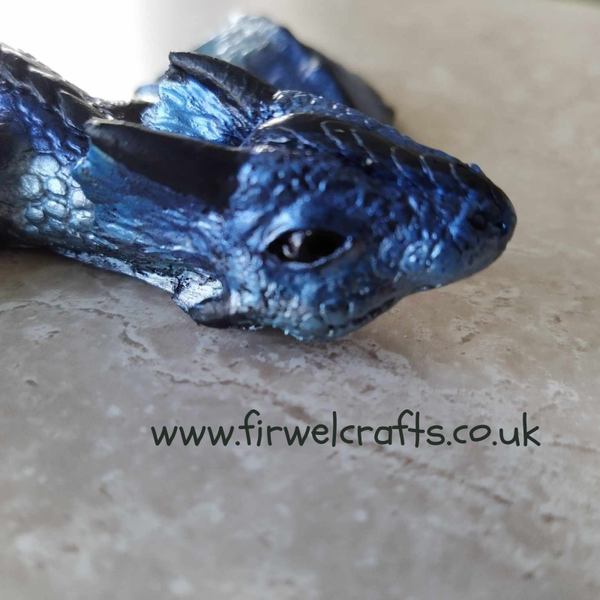 X Blues & Black Drake the Baby Flying Dragon wall decoration, Birthday gift for dragon collector.