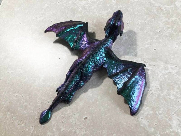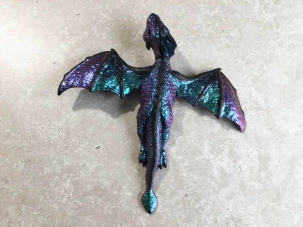 **COLOUR CHANGE CHAMELEON Teal Blues purple & Black Drake the Baby Flying Dragon wall decoration, Birthday gift for dragon collector.